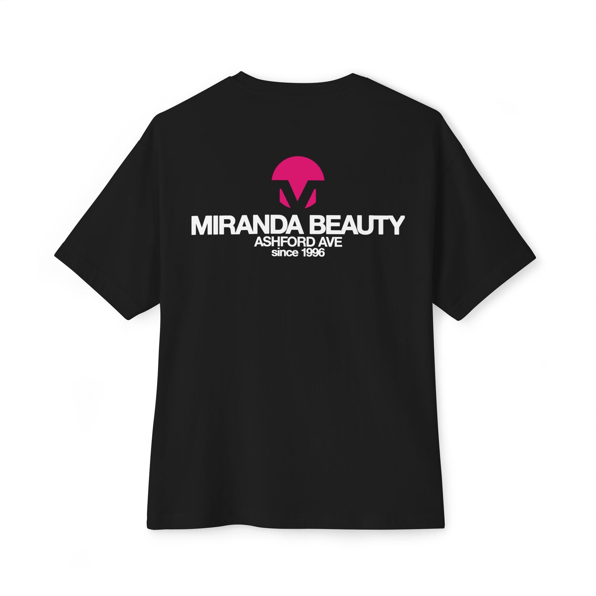 We’ve been serving looks and making magic since 1996, and now you can wear the legacy. This oversized boxy tee isn’t just comfy—it’s iconic. With our bold Miranda Beauty logo front and back, it’s a walking statement.